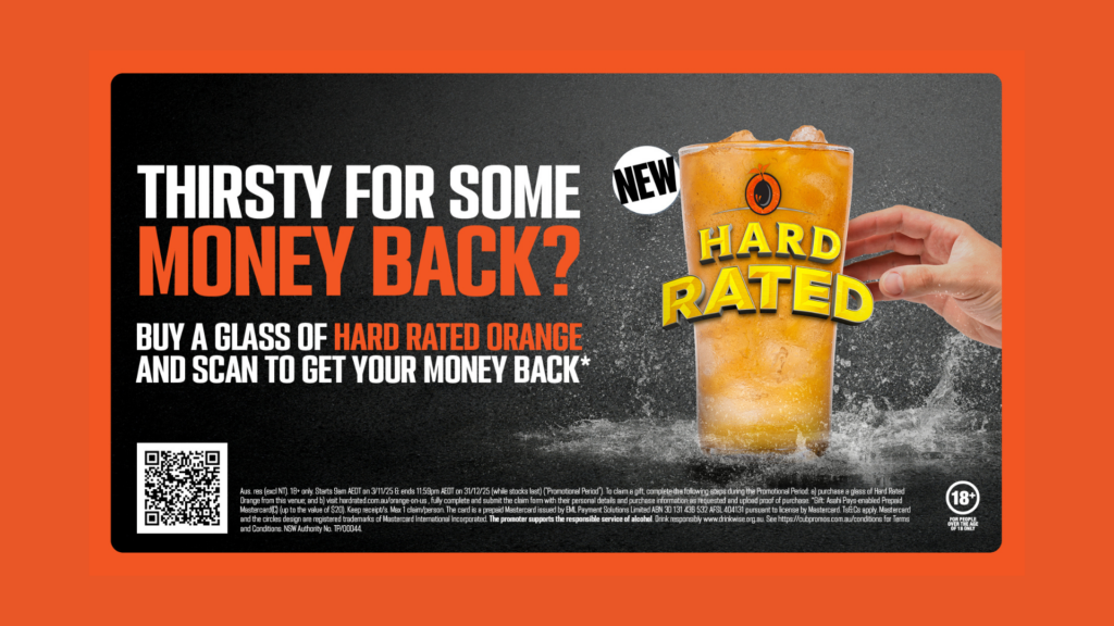 Thirsty for a little win? Grab a glass of Hard Rated Orange and we’ll give you your money back. It’s that simple. Swing by, sip easy, and enjoy a cheeky reward just for treating yourself. Drink responsibly.